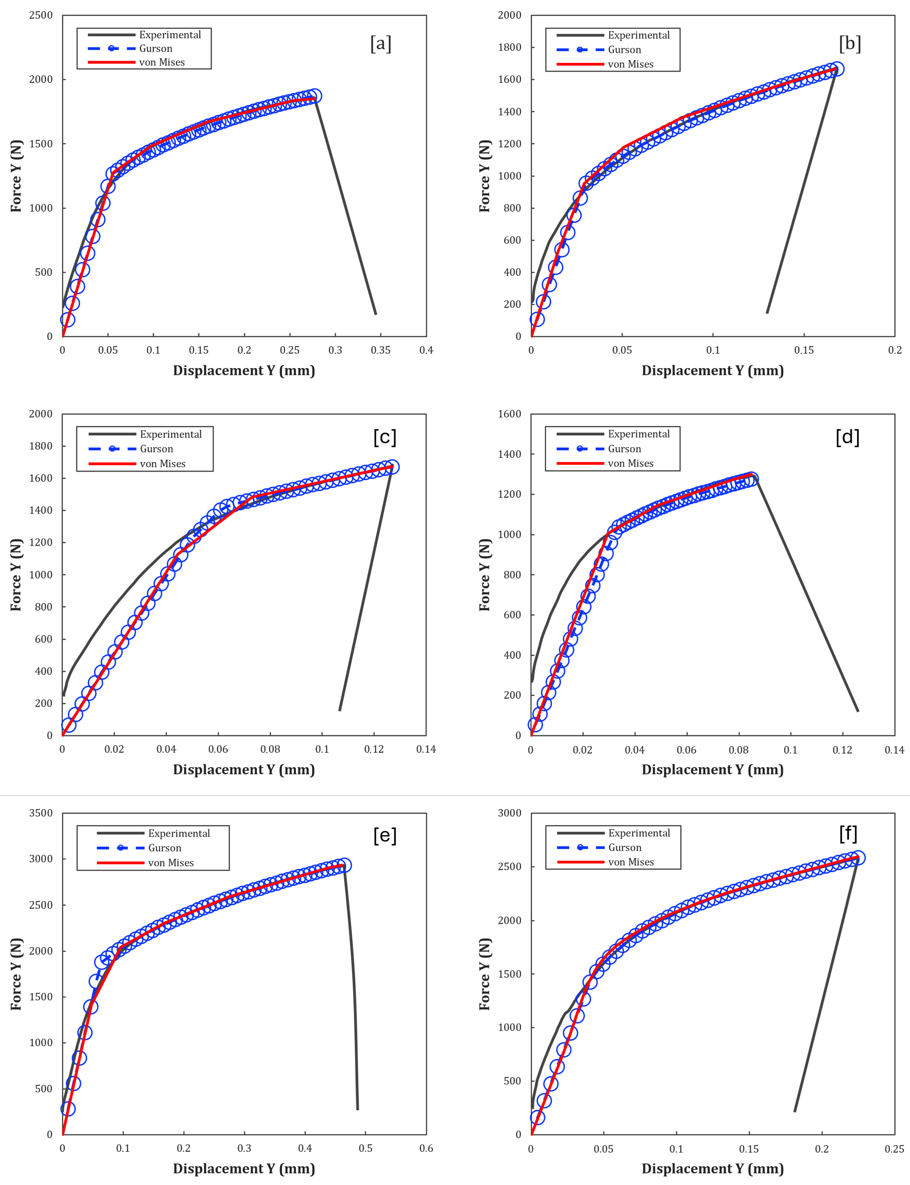 In this context, the Gurson model is a fundamental tool for characterizing the behavior of materials manufactured by AM. Developed to describe the influence of micro voids on mechanical response, the model explicitly incorporates pore volume fraction (f) and hydrostatic pressure (p) into the flow function. This makes it possible to predict not only the growth of pre-existing voids but also their coalescence under loading, critical aspects for materials with a heterogeneous microstructure.