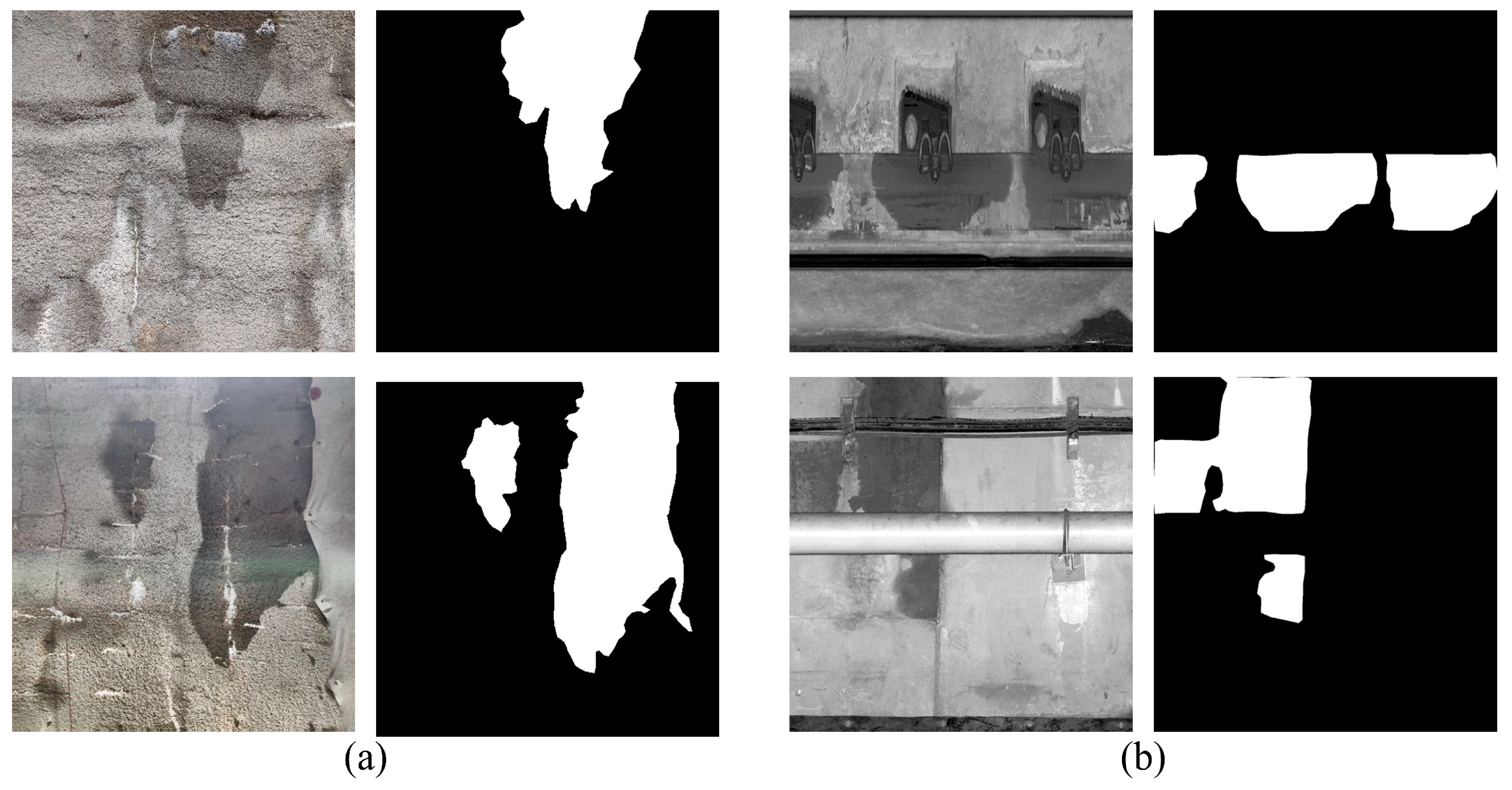 - Zhao, L.; Wang, J.; Liu, S.; Yang, X. An Adaptive Multitask Network for Detecting the Region of Water Leakage in Tunnels. Appl. Sci. 2023, 13, 6231. [Google Scholar] [CrossRef]