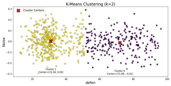 Lastly, Equations (6) and (7) are repeatedly executed until the maximum number of iterations is reached. Simultaneously, the results are continuously optimized to bring the data of each group as close together as possible, thereby realizing the classification of data points.