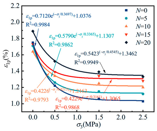 Law of variation in peak strain εc with σ3 for specimens with different N.