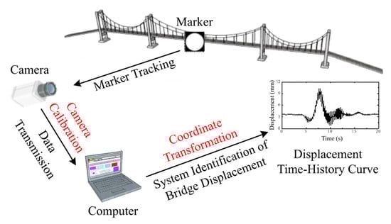 Subsequently, displacement data of markers are derived from the identification algorithm based on their image coordinates. Finally, the coordinate transformation is applied to convert the measured image displacement into displacement in the spatial coordinate system.