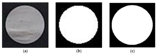 The main idea of the automatic adjustment mechanism for the binarization threshold parameter is as follows: first, the marker image is binarized using the threshold value from Figure 2c as the initial parameter. A variable f is defined as the ratio between the number of white pixel blocks and the total number of pixel blocks within the marker’s minimum bounding rectangle in Figure 2c, and the range from 0.95 f to 1.05 f is designated as the desired threshold range. For the i-th frame, the ratio is calculated as the number of white pixel blocks after binarization divided by the total number of pixel blocks within its minimum bounding rectangle. If exceeds 1.05 f, the binarization threshold is iteratively reduced until falls within the adaptive range.