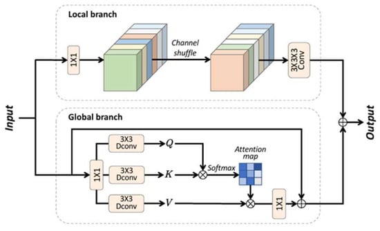 CAFM combines the advantages of both convolution and attention mechanisms, and its structure is composed of a local branch and a global branch. In the local branch, fine- grained local features and edge information can be extracted with the help of convolutional operations, while the global branch uses the attention mechanism to focus on the global features and key regions of the image, which preserves the feature information and spatial structure of the image while suppressing the noise, and thus enhances the richness and accuracy of the feature representation [