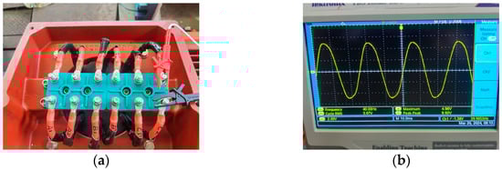 The motor was connected to a prime motor through a gearbox for the experiment. The prime motor was used to drag the prototype motor to operate at a rated speed of 300 r/min, and the no-load-induced EMF was measured. A voltage probe with a magnification factor of 100 was used to measure the voltages at the six output terminals. The average value of voltage was taken to obtain the no-load-induced EMF waveform. The no-load test of the motor is shown in Figure 17.