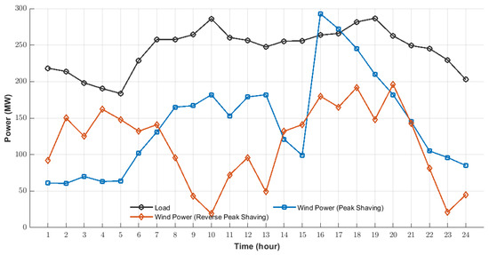 Operational assumptions are set as follows: PDR adjustments are capped at 10% of total load, and IDR deployment does not exceed 5% of total load. For streamlined calculations, fixed compensation cost coefficients for IDR are employed, as specified in Table 2. Load and wind power dynamics are visualized in Figure 3, which captures load fluctuations alongside wind power variations under both scenarios. To ensure the reproducibility of the DRL implementation, detailed parameters of the training process and computational setup are specified as follows: the learning rate is set to 0.001 for both the Actor and Critic networks to balance training convergence speed and stability; the Adam optimizer is adopted, with momentum parameters = 0.9 and = 0.9 to adaptively adjust the learning rate for different parameters; the discount factor is used to emphasize short-term operational rewards while retaining consideration for long-term system stability; training is terminated when the average reward of 20 consecutive episodes stabilizes within a 2% fluctuation range, ensuring the learned policy is robust and convergent; and experiments are conducted on a server equipped with an Intel Core i5-11400F and 16 GB RAM with the software environment built using Python 3.8 and PyTorch 1.10 to provide sufficient computational resources for DRL model training and inference. The DRL model undergoes offline training only once. The training is conducted using sufficient historical operational data, which covers typical seasonal, daily, and load fluctuation scenarios.