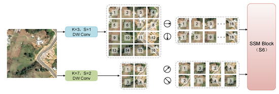 - Zhu, Q.; Fang, Y.; Cai, Y.; Chen, C.; Fan, L. Rethinking scanning strategies with vision mamba in semantic segmentation of remote sensing imagery: An experimental study. IEEE J. Sel. Top. Appl. Earth Obs. Remote Sens. 2024, 17, 18223–18234. [Google Scholar] [CrossRef]