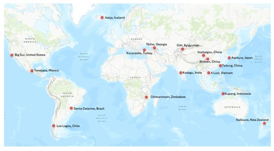 Spatial distribution of the 17 landslide sites in the GVLM dataset.