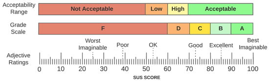 - Lewis, J.R. Measuring perceived usability: The CSUQ, SUS, and UMUX. Int. J.-Hum.-Comput. Interact. 2018, 34, 1148–1156. [Google Scholar] [CrossRef]