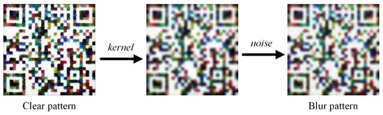 The blur degrading process of security patterns can be conceptualized as the convolution of a clear pattern with a kernel function, accompanied by additive noise that is analogous to white Gaussian noise. Under the assumption that the blur is uniform and spatially invariant, the mathematical model of an individual blur pattern can be expressed as follows: