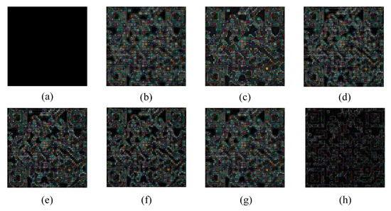 where k, C, B, and ⊗ represent the blur kernel, clear pattern, blur pattern, and convolution operator, respectively. The term denotes the regularization constraint of the blur kernel. The weights are denoted by and , and is the regularization constraint of the clear pattern, which is calculated as .
