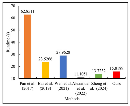 Figure 23 shows the notable discrepancy in the runtimes of various methods. In this study, the subject under investigation was an image processing system based on a smartphone platform. The processing speed of the proposed method is sufficient for near real-time operation. Specifically, the processing time for a single frame is approximately 16 s, which can stably support non-real-time interactive applications, such as photo post-processing. To continuously optimize efficiency, subsequent technical solutions could be implemented, including multi-threaded parallel scheduling, low-level code refactoring (using C++/Metal/Vulkan), and dynamic convergence mechanisms—automatically terminating iterations when the calculation results reach a preset precision threshold to achieve a more efficient processing flow.