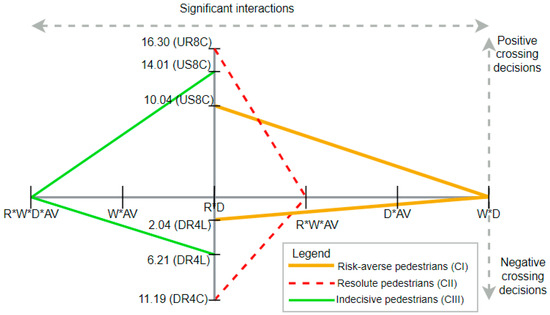 A three-cluster solution was adopted to classify the participants into distinct clusters based on their varying decisions to either cross or not cross a road in the sixteen scenarios. Table 8 shows the demographics in each cluster.