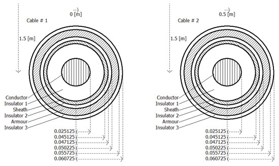 Based on PSCAD/EMTDC, a model of an all-DC offshore wind farm is built as shown in Figure 6, in which a total of eight collection lines are set up in the collection network, and the distance from the bus to the first turbine outlet on the collection line varies from 2 km to 10 km, as shown in Table 1, while the distance between each wind turbine is 1 km. The cable line is implemented by the frequency-dependent cable model in PSCAD/EMTDC, with its parameter definitions specified in Figure 7.