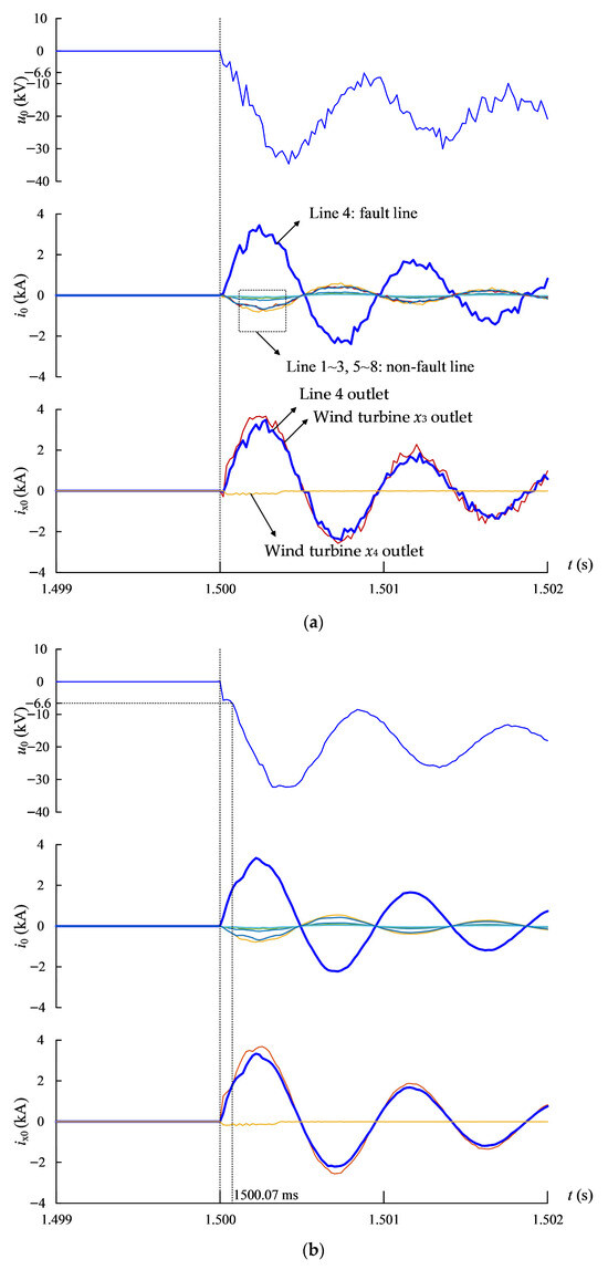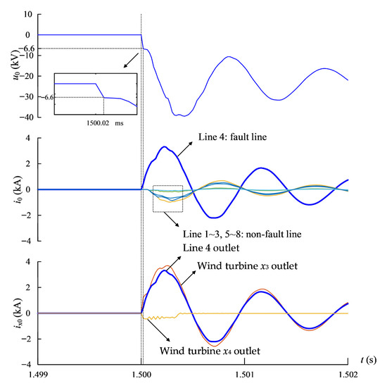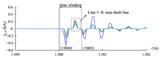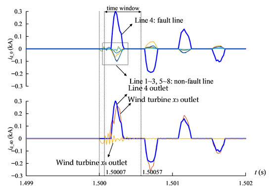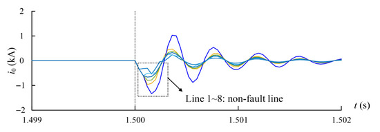 According to Figure 3, it can be seen that for the zero-mode current at the outlet of each line, there is the following relationship based on Kirchhoff’s Current Law: