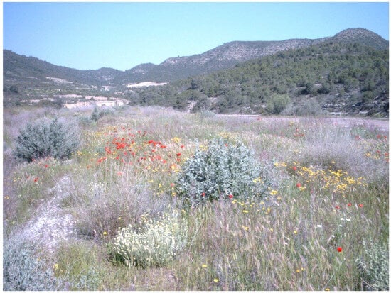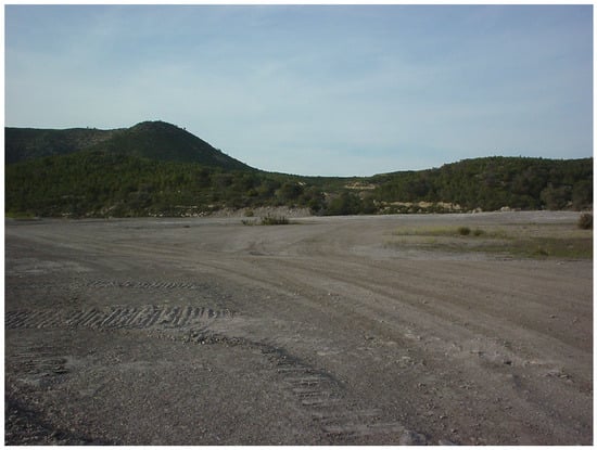In a flat area, at the top of a filled branch of the Cova Plana ravine (Figure 1), two experimental field strips (designated AI and AII) were defined. Each strip was 10 m wide and 140 m long. The distance between both strips was 1 m.