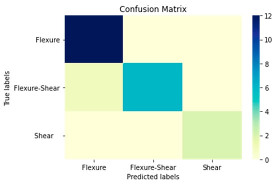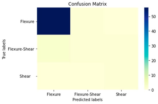Lastly, the performance metrics for predicting failure modes of rectangular RC columns using the traditional method are also presented below. This approach, based on engineering mechanics and code provisions (see also []), attains an accuracy of 97% in correctly identifying the actual failure modes of the tested columns. The accuracy is calculated from Table 2 by dividing the sum of the diagonal elements by the total sum of all elements in the table.