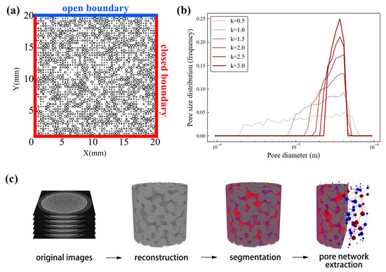 - Thompson, K.E. Pore-scale modeling of fluid transport in disordered fibrous materials. AIChE J. 2002, 48, 1369–1389. [Google Scholar] [CrossRef]