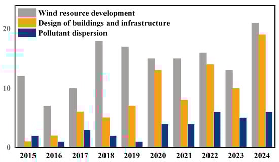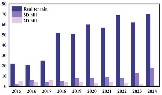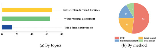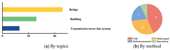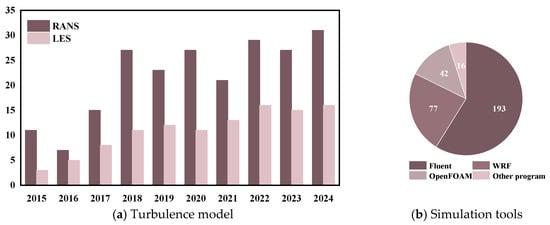 As shown in Figure 5b, publications for wind fields over hilly terrain are increasing. CFD methods maintain a dominant position, fundamentally due to the ideal balance they strike between cost-effectiveness, flexibility in handling real complex geometries, and the ability to visualize the entire flow field—advantages that are difficult for physical experiments to match. Wind tunnel experiments and field measurements, essential for providing key physical insights and validation data, rank second. Notably, the number of studies employing data-driven models has tripled since 2019 (in Figure 5b), reflecting a profound paradigm shift: As vast datasets from both simulations and observations become available, the research community is actively exploring AI to enhance predictive efficiency and tackle complex, multi-parameter problems that are challenging for traditional methods. Meanwhile, Figure 5b also highlights a critical limitation of experimental approaches: the scarcity of high-quality observational and experimental data may constrain the development, calibration, and validation of both CFD simulations and data-driven models. Therefore, future efforts should not only advance numerical and data-driven methodologies but also prioritize the advancement of experimental techniques and the accumulation of high-quality datasets.