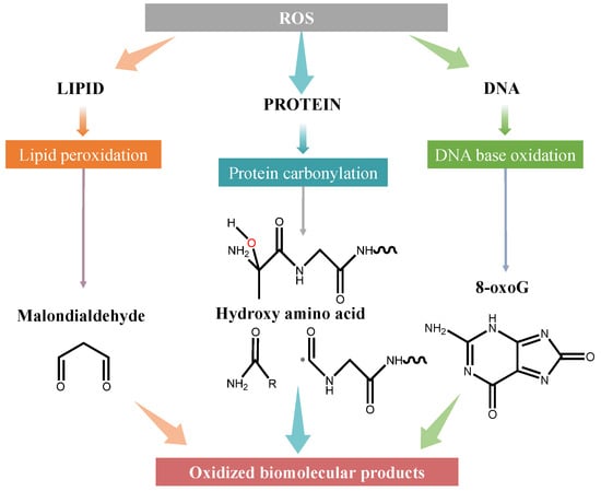 Proteins are essential components of cellular structures and functions, but unlike lipids, they are particularly vulnerable to oxidative modifications, most notably carbonylation. This process results from the ROS-mediated oxidation of specific amino acid side chains, producing ketone and aldehyde groups that compromise protein stability, enzymatic activity, and metabolic regulation. Common targets include proline, glutamic acid, lysine, and threonine, which undergo well-characterized transformations into pyrrolidone, glutamic semialdehyde, aminoadipic semialdehyde, and aminoketobutyric acid, respectively [,,].