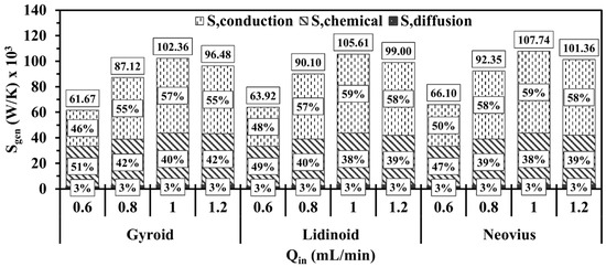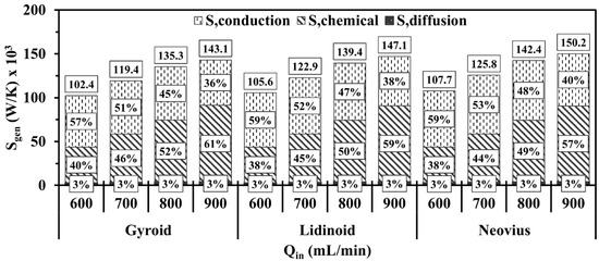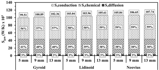The diffusion , conduction , chemical , and total entropy generations [41,49] are calculated as follows: