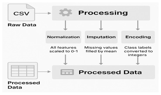All data were preprocessed through Min–Max normalization, missing value imputation based on class means, and categorical encoding. Subsequent training and evaluation procedures, including hyperparameter tuning and the validation strategy, are described in Section 3.3.1 and Section 3.3.2, respectively.