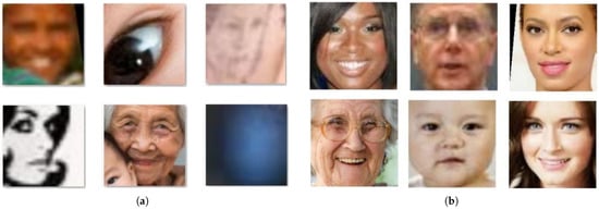 Sample images from the dataset: (a) removed from the final dataset; (b) examples used in the final dataset.
