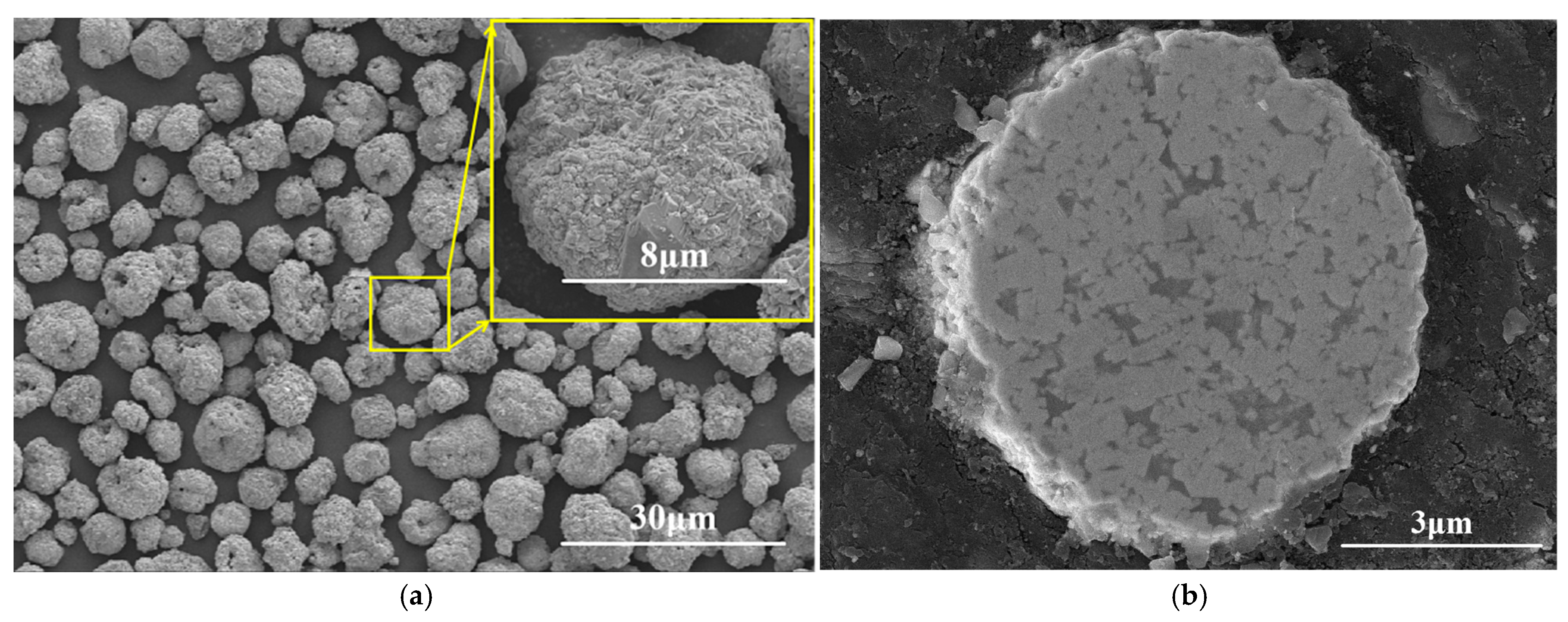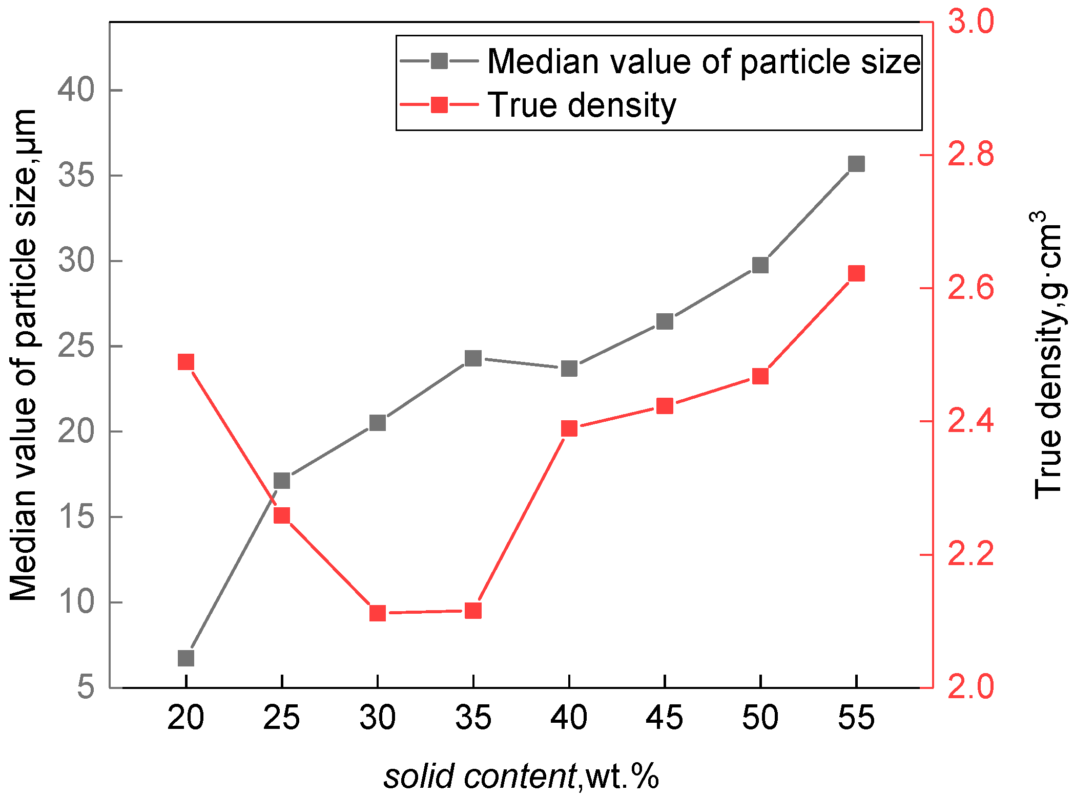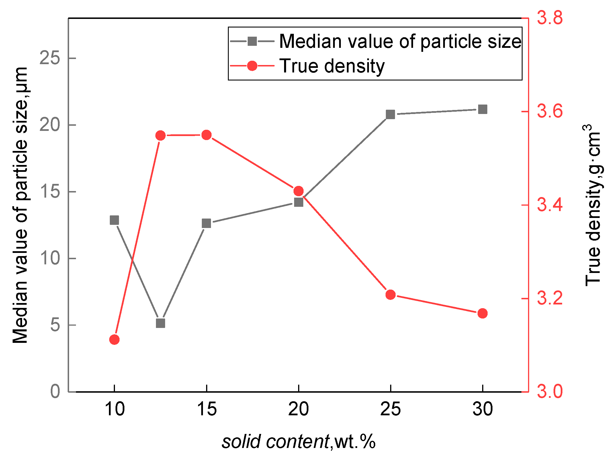 3.1. Effect of Solid Content of Pre-Sprayed Slurry on Powder