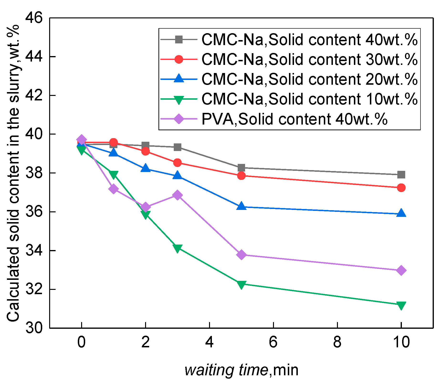 2.2. Viscosity and Stability of Pre-Sprayed Slurry