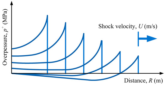 Shock waves play an important role in the course of detonation. There are two phases during this phenomenon: the phase of maximum pressure (overpressure) at the moment of detonation, which, after a certain time, transitions into a negative phase (underpressure) (Figure 1) [35,36].