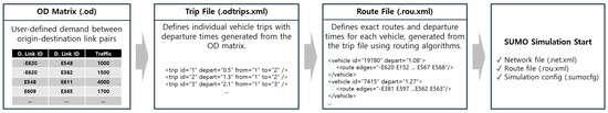 Overview of data processing steps from OD matrix to SUMO simulation execution.