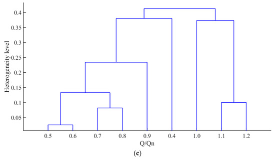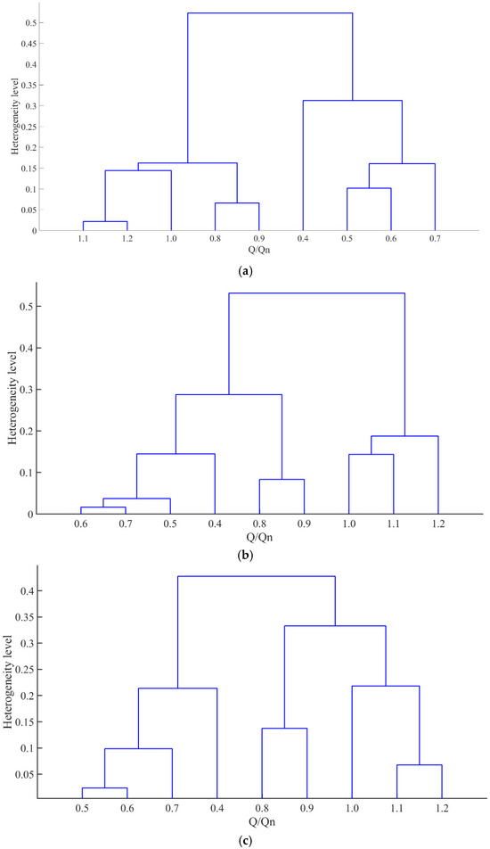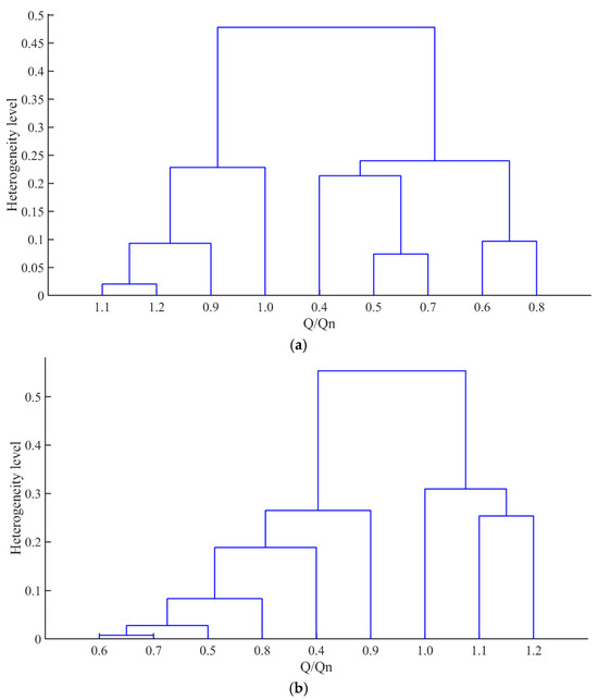 A bottom-up agglomerative hierarchical clustering (AHC) algorithm is implemented, wherein data points are iteratively merged via recursive iterations [42]. This methodology has demonstrated efficacy in fluid machinery data analysis; Li et al. [43] highlighted that AHC, especially when combined with advanced technologies such as ensemble learning and improved similarity measurement methods, exhibits excellent performance in capturing complex hierarchical relationships in multi-dimensional data. This process generates a dendrogram, a tree-like diagram that visually represents the clustering hierarchy. The methodology is characterized by the progressive aggregation of the most similar data pairs. Throughout the clustering procedure, comprehensive records of merging sequences and distance metrics are maintained.