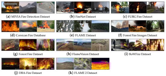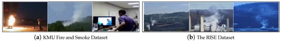 - Dataset Limitations: A critical challenge in developing robust fire and smoke detection models lies in the scarcity of large-scale, high-quality, and diverse datasets with comprehensive annotations. Existing repositories are often limited in size and fail to encompass essential conditions such as nighttime visibility, dense urban environments, or extreme weather, which restrict model generalization and hinder consistent benchmarking across architectures [165,167]. Advances in this area increasingly rely on collaborative efforts to construct standardized, multimodal datasets—including RGB, infrared, and thermal imagery—that capture diverse environmental conditions and support comprehensive evaluation.