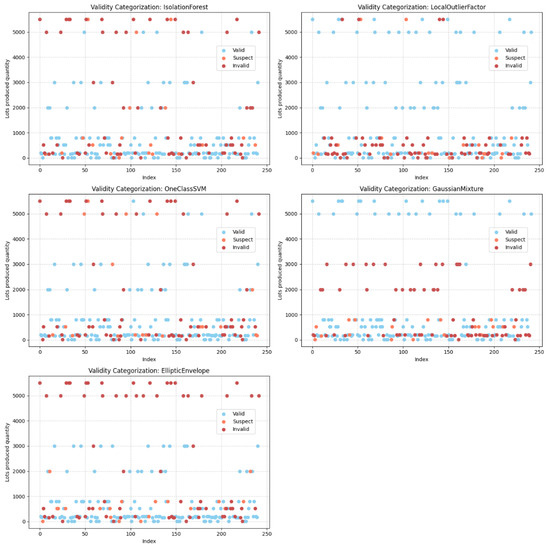 Using the same set of real-world data collected from companies in the T&C sector (as detailed in Section 5.1), each approach involves distinct data preparation strategies and uses different ML algorithms for data validation and anomaly detection. An anomaly is defined as an observation that significantly deviates from the expected behavior or pattern within a dataset. Also referred to as an outlier or deviation, an anomaly represents an unusual or rare value among a collection of observed data points. Anomalies can generally be classified into three main categories [5,32]: