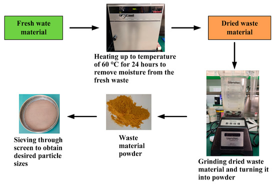 Mandarin peel (MP). Waste from a citrus-processing plant in Dalmatia was dried for 24 h at 60 °C, and milled to a d50 of about 110 µm (Figure 1).