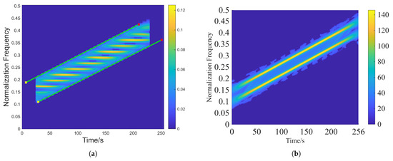 - Xia, X.; Yu, F.; Liu, C.; Zhao, J.; Wu, T. Time-Frequency Image Enhancement of Frequency Modulation Signals by Using Fully Convolutional Networks. In Proceedings of the 2018 15th International Conference on Control, Automation, Robotics and Vision (ICARCV), Singapore, 18–21 November 2018; pp. 1472–1476. [Google Scholar] [CrossRef]