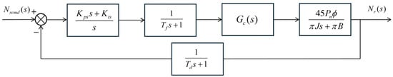 Figure 3 and Figure 4 illustrate the transfer function block diagrams of the current loop and the speed loop, respectively, whose structures can be described by Equations (1) and (2).