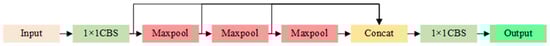 In addition, YOLOv11 incorporates the SPPF module in the second-to-last layer of its backbone. This module is crucial for extracting multi-scale feature information. By stacking three max-pooling operations, it achieves feature fusion from local to global, further enhancing the information representation of feature maps and improving detection accuracy. The structure of the SPPF module is shown in Figure 4, where the kernel size of each max-pooling operation is 5 × 5.
