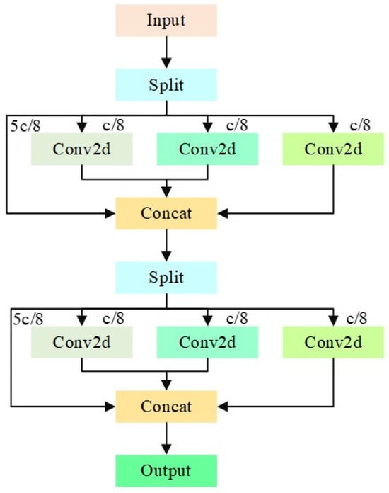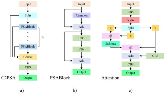 In the last layer of the backbone, YOLOv11 uses the C2PSA module. This module further enhances the model’s spatial attention capability through the stacking of multiple PSA modules, facilitating feature extraction by the network. The Attention module in the PSA module, inspired by Vision Transformer, introduces the attention mechanism from it to strengthen the network’s feature extraction. The structure diagram of C2PSA is shown in Figure 5.