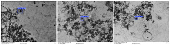 Viral safety is of paramount importance in biopharmaceutical production, particularly for biologics derived from mammalian cells. Retroviruses such as murine leukemia virus (MLV) and xenotropic murine leukemia virus (X-MuLV) can contaminate cell substrates, posing significant biosafety risks []. Transmission Electron Microscopy (TEM) serves as a key tool for detecting viruses in unprocessed bulk (UPB) samples, enabling direct visualization of viral particles without requiring prior knowledge of the pathogen []. Nevertheless, manual TEM analysis is time-consuming, taking 2–4 h to complete, and human fatigue may lead to undercounting or misjudgment issues that could delay production or result in missed contamination [,].