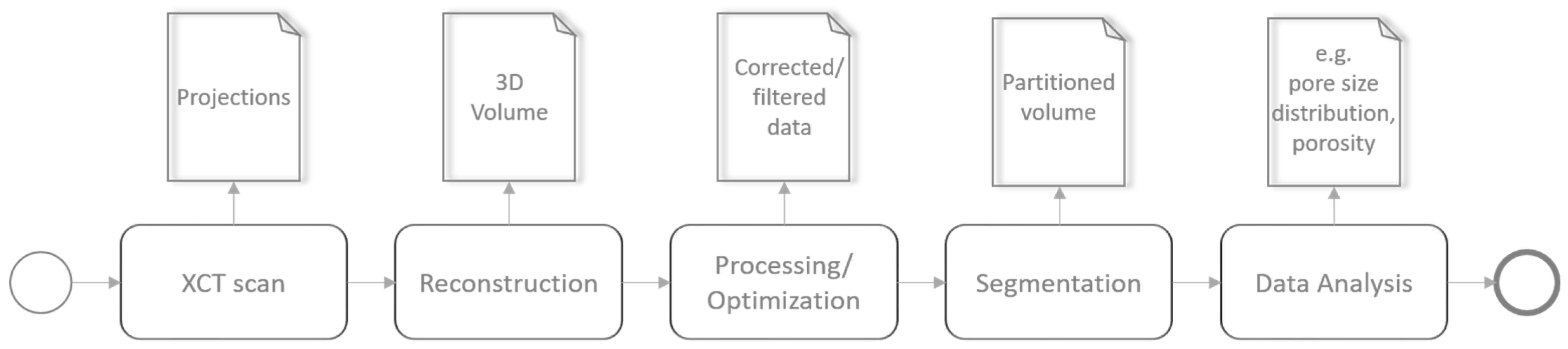 - Heinzl, C.; Amirkhanov, A.; Kastner, J. Processing, Analysis and Visualization of CT Data. In Industrial X-Ray Computed Tomography; Carmignato, S., Dewulf, W., Leach, R., Eds.; Springer International Publishing: Cham, Switzerland, 2018; pp. 99–142. ISBN 978-3-319-59571-9. [Google Scholar]