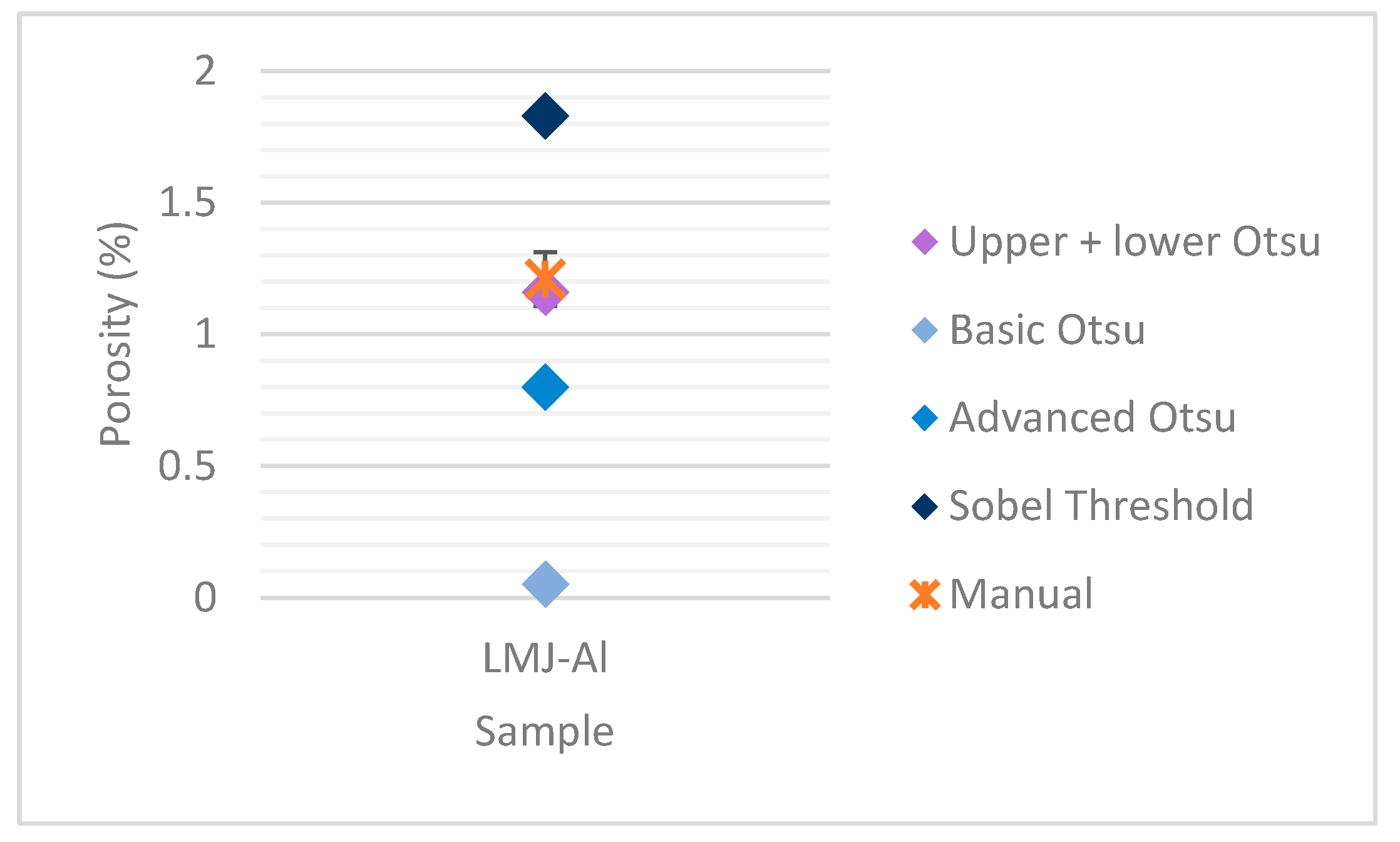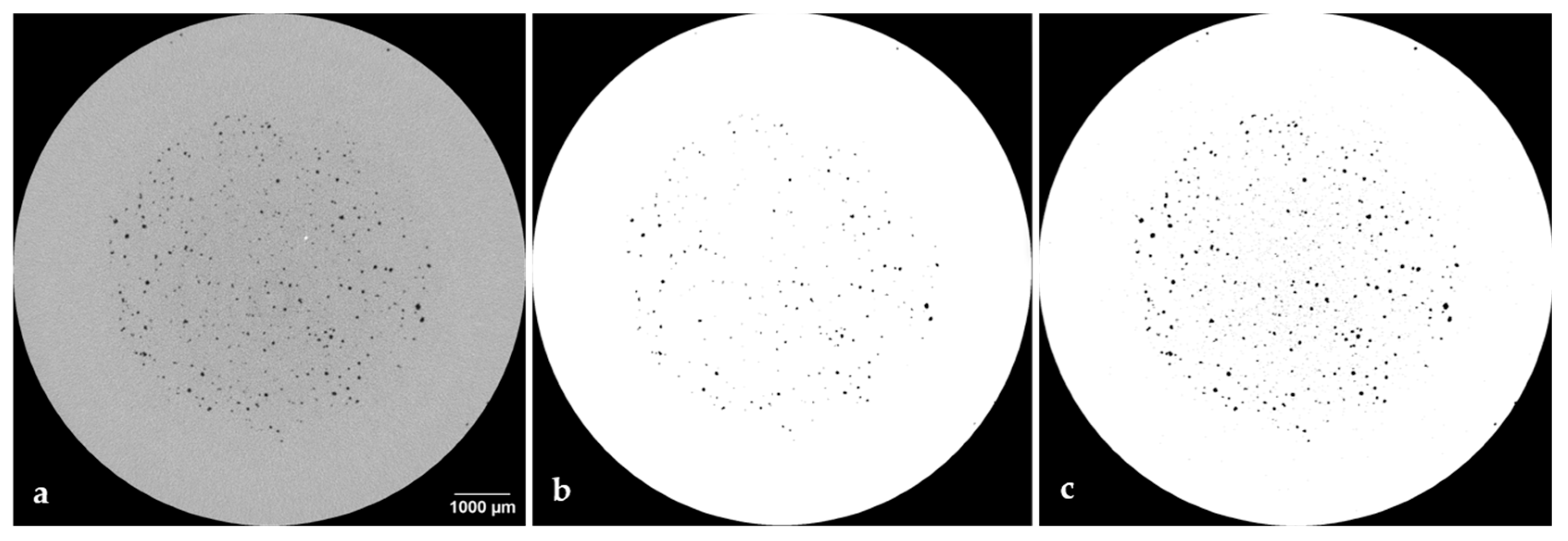 - Jaques, V.A.J.; Plessis, A.D.; Zemek, M.; Šalplachta, J.; Stubianová, Z.; Zikmund, T.; Kaiser, J. Review of Porosity Uncertainty Estimation Methods in Computed Tomography Dataset. Meas. Sci. Technol. 2021, 32, 122001. [Google Scholar] [CrossRef]
