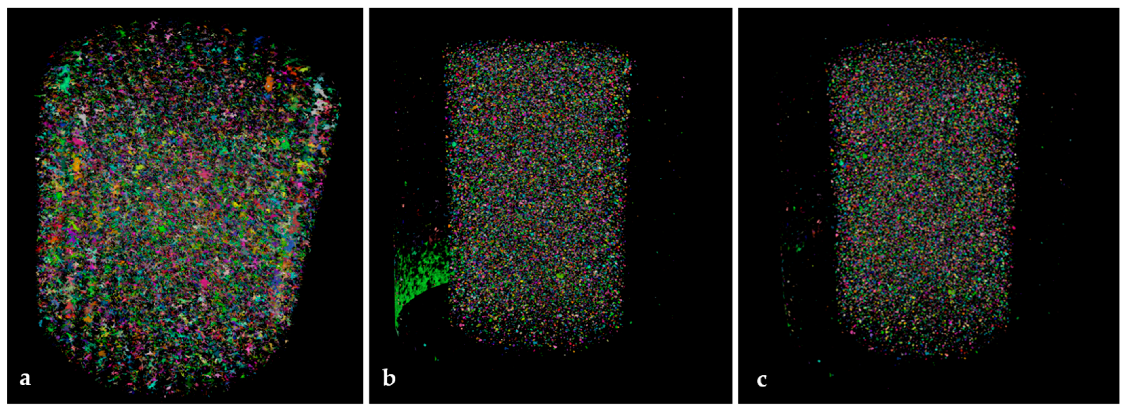 - Du Plessis, A. Application Note: Dragonfly Basic Automated Porosity Analysis for Additively Manufactured Parts. Available online: https://dragonfly.comet.tech/getmedia/c6d4a904-9ace-46dd-b0a7-08bfe56999b9/DF_Application_Note_Additive_Manufacturing_Automated_Porosity_Analysis.pdf?disposition=attachment (accessed on 23 April 2025).