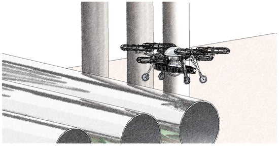 Currently, the inspection of transmission pipelines performed by drones is mainly a non-contact operation. The UAV hovers over the pipeline and collects data such as temperature and pressure using sensors such as cameras and thermal imagers. Subsequently, image recognition techniques are used to detect pipeline anomalies [7]. In [8], a quadcopter UAV is employed for oil pipeline monitoring, and a PID controller is designed to control the distance between the quadcopter UAV and pipeline. In [9], a UAV equipped with non-contact sensors is studied for inspection of oil and gas pipelines. An image processing technology is proposed to realize autonomous navigation and pipeline tracking. This hovering inspection mechanism has limited detection accuracy. Tiny cracks are usually not found in time. During the inspection process, the UAV is unable to make direct contact with the pipeline due to its non-contact operational characteristics. As a result, it is unable to directly and accurately obtain data on key parameters such as pressure and temperature inside the pipeline. This limitation may lead to an imprecise assessment of the pipeline condition, which in turn affects the accuracy of the inspection results.
