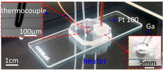 - Gao, M.; Gui, L. Development of a Fast Thermal Response Microfluidic System Using Liquid Metal. J. Micromech. Microeng. 2016, 26, 075005. [Google Scholar] [CrossRef]