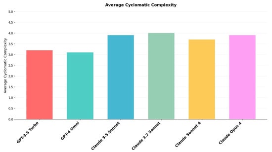 Average cyclomatic complexity scores across AI models.