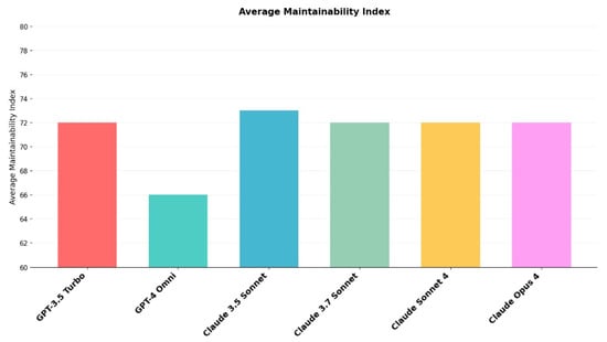 Average maintainability index scores for all evaluated models.