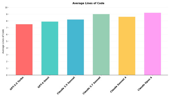 Average lines of code generated by each AI model.