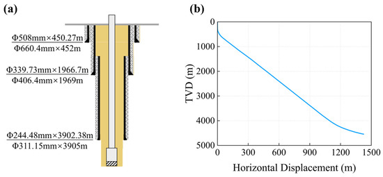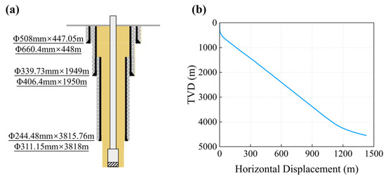 Wellbore structure and trajectory of Well #1: (a) Wellbore structure; (b) Well trajectory.