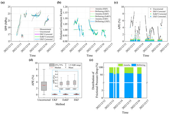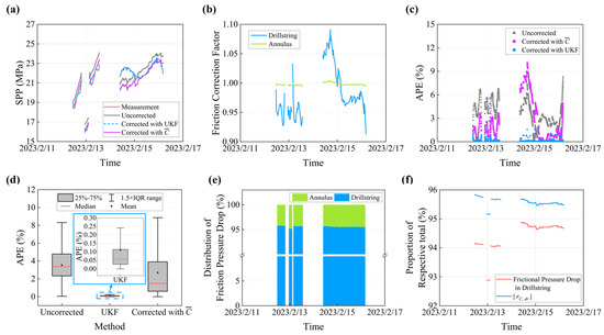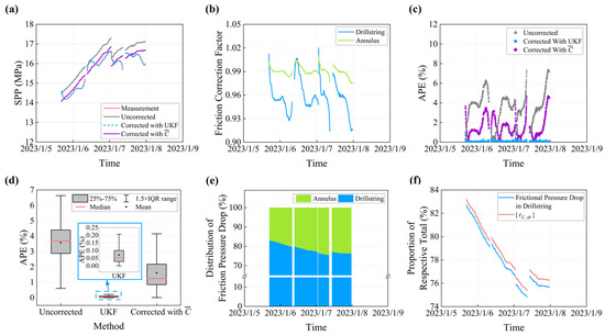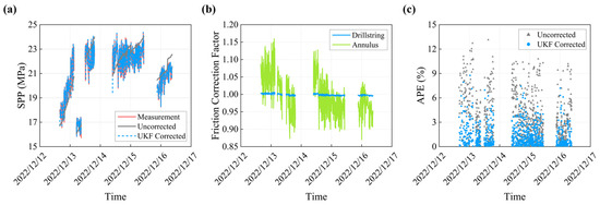where is the friction correction factor solved by the UKF inversion algorithm, dimensionless ( for drillstring, for annulus). Differences in the structures and the proportion of pressure drop may lead to different correction demands in the annulus and the drillstring. Therefore, distinct friction correction factors are applied for the drillstring and the annulus.