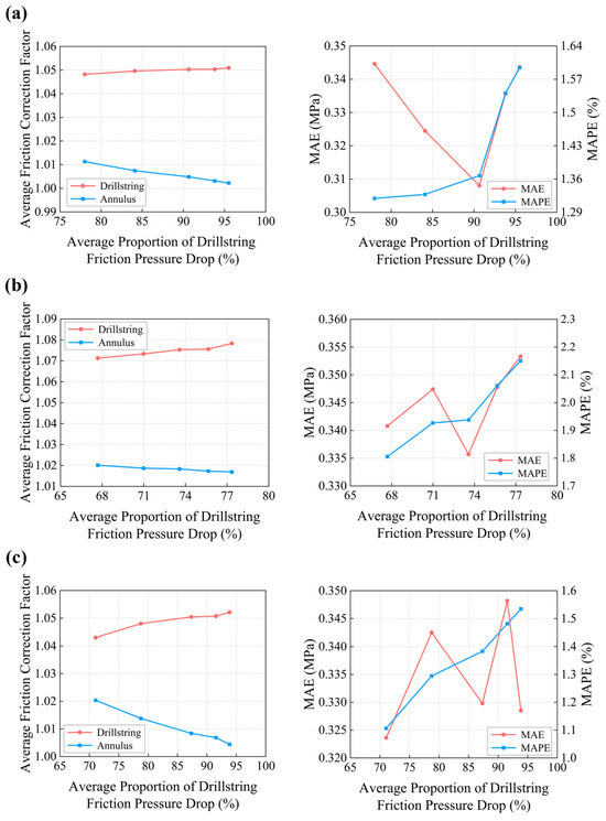The calculation of frictional pressure drop is affected by multiple factors. To improve the adaptability and calculation accuracy of the frictional pressure drop calculation model, this study introduces a friction correction factor into the frictional pressure drop calculation model (Equation (6)), resulting in Equation (16):